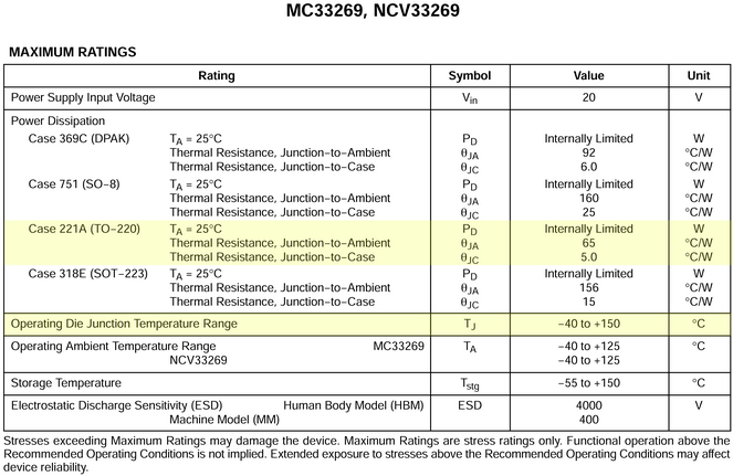 MC33269 in a TO-220 package is 65°C per Watt. This thermal