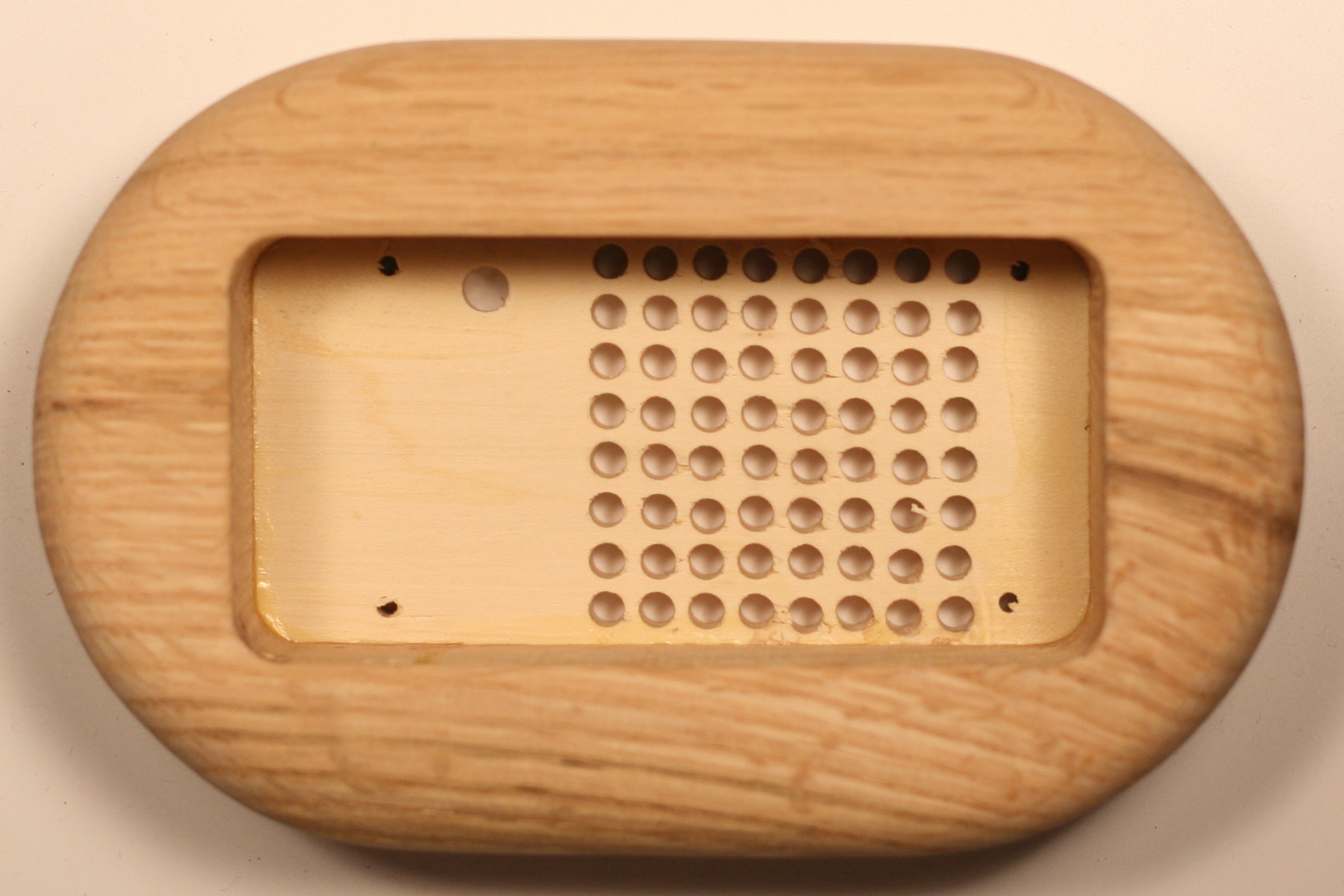 The prototype case was milled from a two-inch glue-up consisting