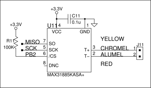 thermocouple interface IC. The circuit shown was connected to the