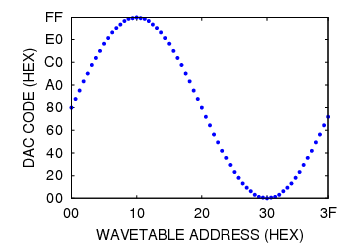 this example the wavetable contains 64 bytes (one byte for each